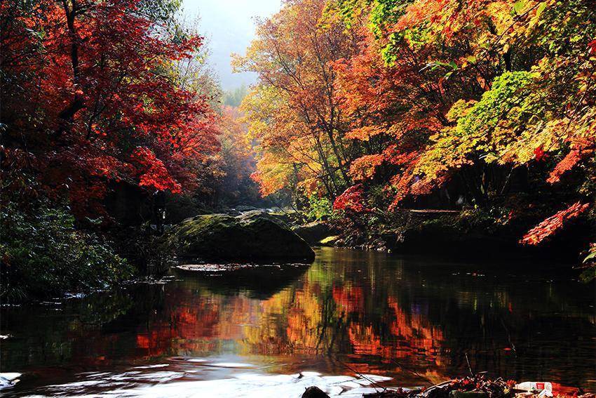 踏着深秋的脚步走进本溪县大石湖老边沟景区,映入眼帘的是五彩斑斓的秋日美景,从三角枫叶到十三角枫叶,有黄、有绿、有红,三色相间,各具特色。多达近20种的枫树沿着层峦叠嶂的山谷铺展开来,在秋日的映照下,争奇斗艳、美不胜收。
